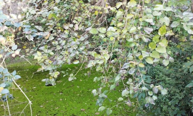तालाब का पानी पूरी तरह से दूषित।