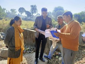 फील्ड विज़िट के दौरान विभिन्न विकास कार्यों को लेकर भूमि का किया निरीक्षण।