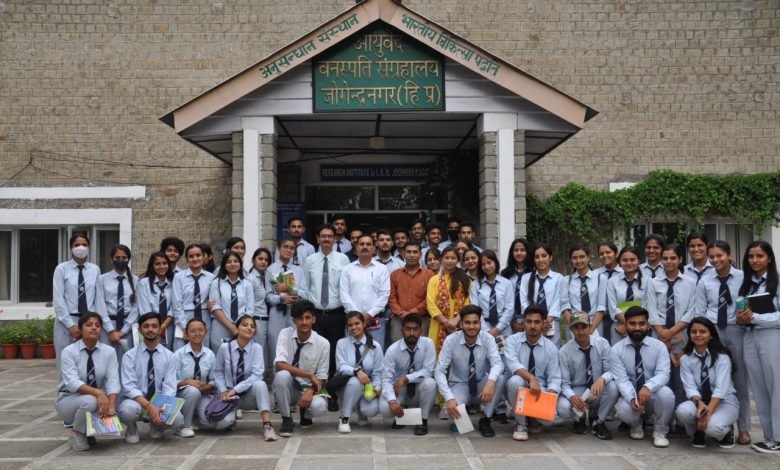 सोमवार को आयुष अनुसंधान संस्थान हर्बल गार्डन एवं हरबेरियम जोगिंद्रनगर जिला मंडी में औद्यानिकी एवं वानिकी विश्वविद्यालय नौणी व वानिकी महाविद्यालय नेरी हमीरपुर के 53 प्रशिक्षु छात्र शैक्षणिक भ्रमण पर वैज्ञानिक डाक्टर सोमदत्त व डाक्टर नवजोत कलेर की अगुवाई में पधारे। भ्रमण के दौरान परियोजना अधिकारी एवं प्रभारी आरआईआई एसएम उज्जवल दीप शर्मा ने सभी का संस्थान में पधारने पर स्वागत किया। सभी को इस संस्थान द्वारा चलाई जा रही गतिविधियों के बारे में पीपीटी के माध्यम से विस्तार पूर्वक बताया गया। वनस्पतिज्ञ मदन लाल ने छात्रों को संग्रहालय का भ्रमण करवाया तथा हरबेरियम में रखे गए औषधीय नमूनों को कैसे बनाया व वैज्ञानिक तरीके से भंडारित किया जाता है के बारे में विस्तार से नमूना सहित चर्चा की। सहायक वनस्पतिज्ञ महिमा ठाकुर ने सभी छात्रों को उद्यान में उगाए गए। औषधीय पौधों से अवगत करवाया तथा इन पौधों के औषधीय गुणों पर विस्तार से बताया । छात्रों ने बताया कि उन्हें यहां आकर दुर्लभ औषधीय पौधों को उद्यान व हरबेरियम में देखकर बहुत प्रसन्नता हुई क्योंकि बहुत सारे पौधों को उन्होंने यहीं पर पहली बार देखा है। छात्रों के साथ आए वैज्ञानिकों ने इस संस्थान द्वारा औषधीय पौधों का संरक्षण व संवर्धन संबंधी कार्य की भूरी भूरी प्रशंसा की और कहा कि शैक्षणिक भ्रमण के लिए यह संस्थान एक अति महत्त्वपूर्ण स्थान रखता है।